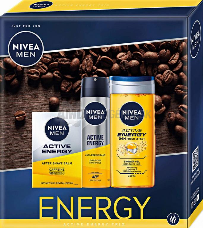Pánsky sprchový gél NIVEA MEN Active Energy Shower vám zaobstará dokonalý pocit čistoty a sviežosti. Kozmetická darčeková sada NIVEA MEN Energy Box poteší každého muža, ktorý sa rád stará o svoj zovňajšok.