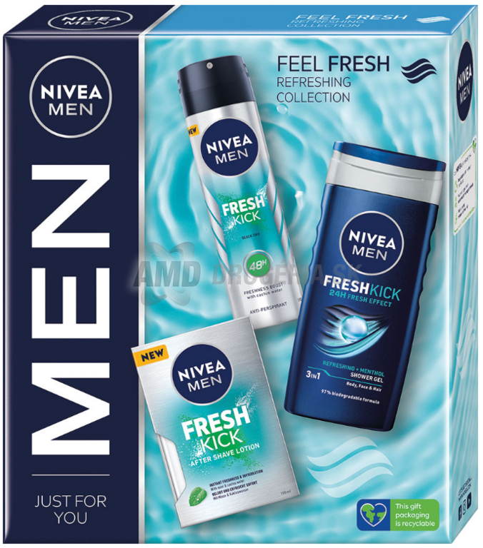 KAZETA NIVEA MEN FEEL FRESH SPRCHOVÝ GÉL 250ML + ANTIPERSPIRANT 150ML + VODA PO HOLENÍ 100ML