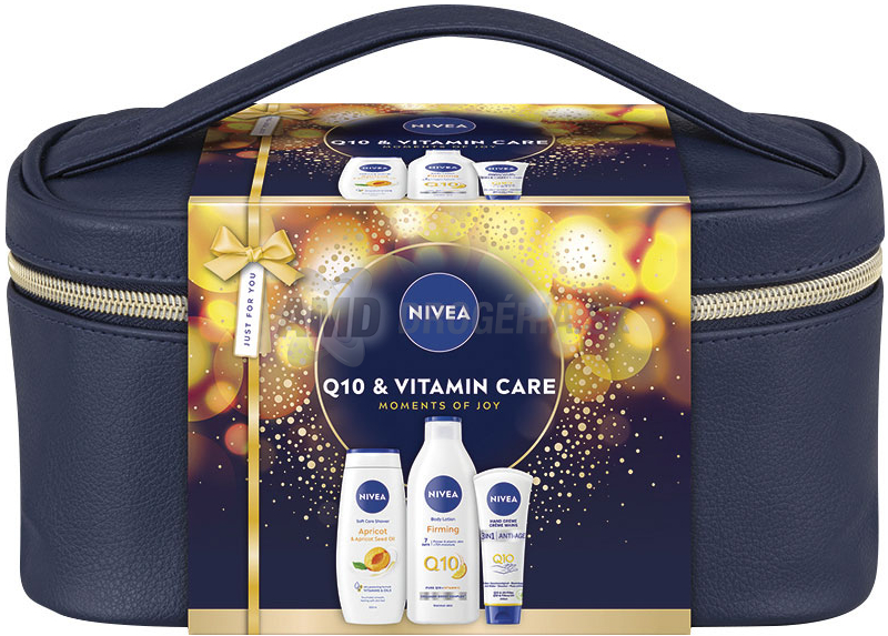 Rozmaznajte na Vianoce mamu, sestru alebo kamarátku a darujte im chvíle voňavej starostlivosti a spevnenú pokožku. V elegantnej darčekovej taške NIVEA Q10 & VITAMIN CARE ich poteší trio ošetrujúcich produktov, ktoré premenia každodennú rutinu na relaxačný rituál. Spevňujúce telové mlieko s koenzýmom Q10 a vitamínom C viditeľne zlepšuje pružnosť pokožky a prináša pocit sebavedomia. Sprchovací gél s jemnou vôňou marhúľ a výživným marhuľovým olejom rozmazná pokožku počas sprchovania a chráni ju pred vysušovaním. O krásne hydratované ruky sa postará omladzujúci krém na ruky 3 v 1, ktorý vyživuje, zjemňuje a redukuje známky starnutia.