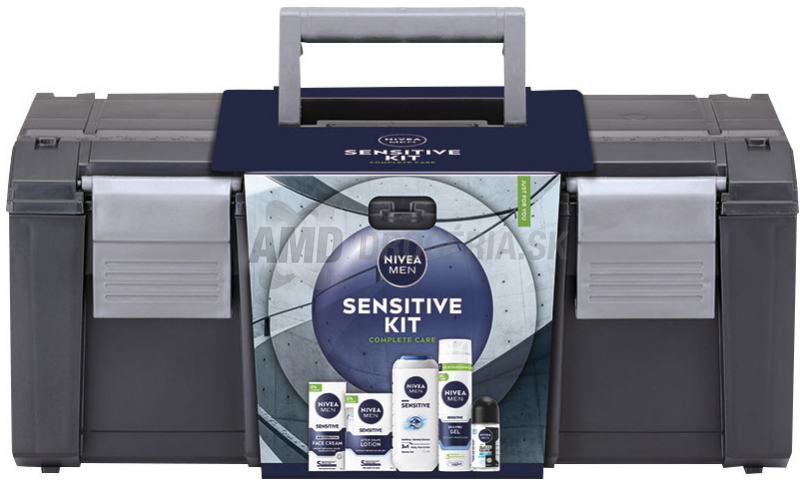 KAZETA NIVEA SENSITIVE KIT TOOLBOX SPRCHOVÝ GÉL 250ML + ROLL ON 50ML + GÉL NA HOLENIE 200ML + VODA PO HOLENÍ 100ML + KRÉM 75ML