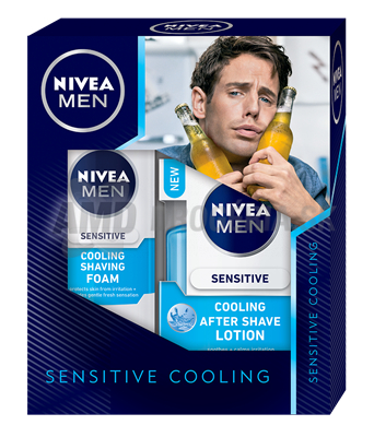 Potešte svojho muža darčekovú kazetou Nivea! Táto s názvom Sensitive Cooling Lotion obsahuje základnú výbavu pre starostlivosť o citlivú mužskú pokožku. Vnútri nájdete penu na holenie Nivea Sensitive Cooling doplnenú balzamom po holení Nivea Sensitive Cooling.