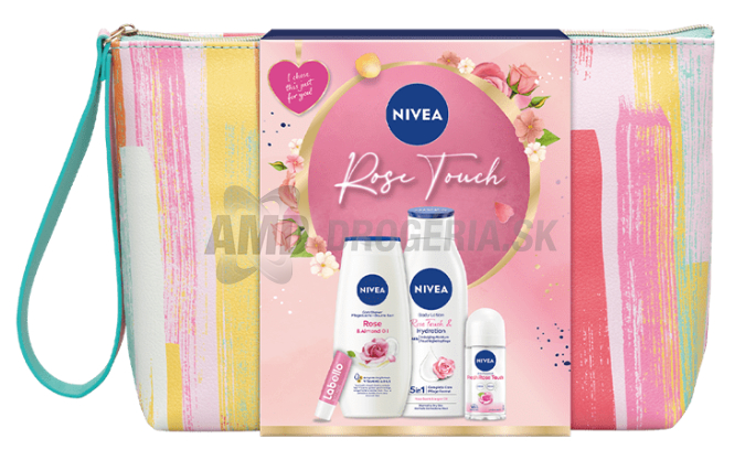 KAZETA NIVEA WOM BAG ROSE TOUCH TELOVÉ MLIEKO 400ML + SPRCHOVÝ GÉL 250ML + ROLL ON 50ML + BALZAM NA PERY 5ML