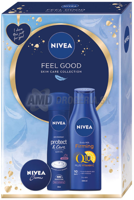 Táto darčeková sada Nivea Feel Good obsahuje niekoľko produktov s ikonickou vôňou NIVEA a šetrnou starostlivosťou o pleť. Tu je stručný popis jednotlivých produktov:
