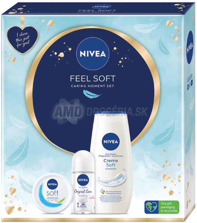 KAZETA NIVEA WOM FEEL SOFT SPRCHOVÝ GÉL 250ML + ROLL ON 50ML + KRÉM 100ML