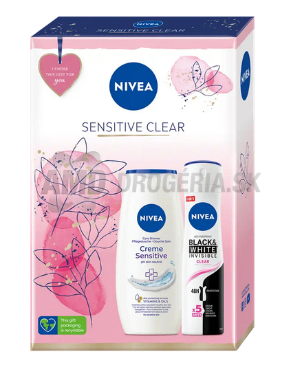 Kombinácia dvoch obľúbencov, s ktorými vedľa rozhodne nešliapnete. Antiperspirant Black & White Invisible Clear sa postará o 48-hodinovú ochranu pokožky pred potením bez toho, aby zanechal škvrny na oblečení. Sprchovací gél Creme Sensitive vás bude rozmaznávať pri kúpeli. Obsahuje výťažok z harmančeka, ktorý preniká hlboko do pokožky, upokojuje ju a zároveň hydratuje bez toho, aby narušoval jej mikrobiálnu vrstvu. Keď cez Vianoce nechcete experimentovať, ale siahnuť po istote, ste na správnom mieste!