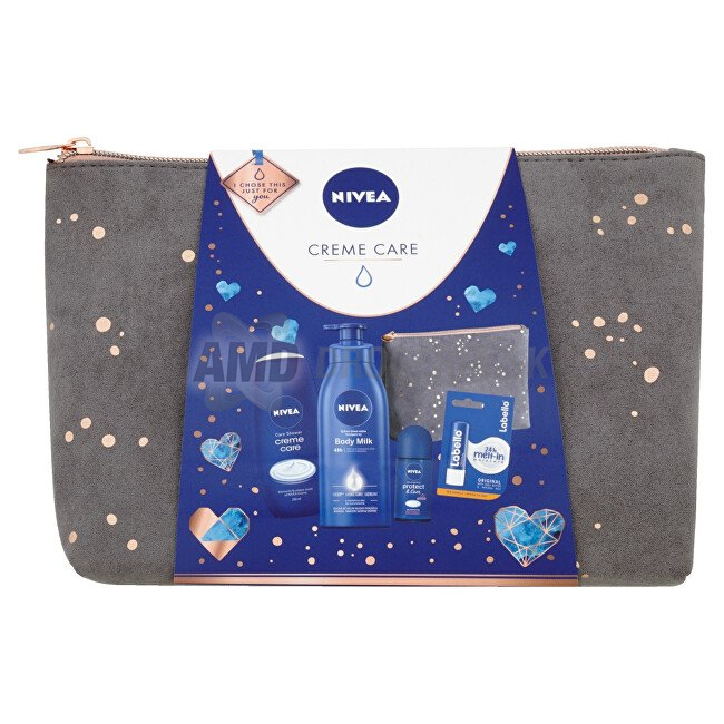 Obdarujte svojich najdrahších tou najjemnejšou starostlivosťou a hebkosťou. Sprchový gél, telové mlieko a dezodorant sa postarajú o pokožku celého tela. Balzam na pery zase zahalí do výživnej a ochrannej vrstvy tenkú a obzvlášť v zime zraniteľnú pokožku pier. Ošetrujúce krémové zloženie obohatené o provitamíny s klasickou vôňou Nivea .