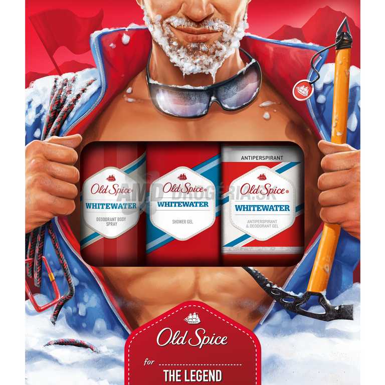 Mrazivé darčekové balenie pre mužov značky Old Spice Whitewater Alpinist. V balení nájdete dezodorant v spreji, gélový dezodorant a sprchový gél.