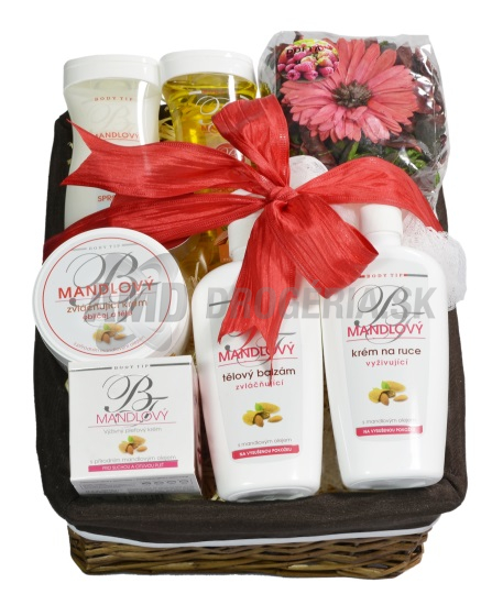 Exkluzívne darčekové balenie výživné kozmetiky s mandľovým olejom a vit. E pre starostlivosť o pokožku tela aj tváre v prútenom dekoratívnom koši. Každý výrobok zaručí tú najlepšiu starostlivosť o zrelú pokožku.