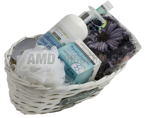 Darčekový kôš s nízkomolekulárnou kyselinou hyalurónovou, ktorá sa nazýva molekula mladosti pre svoju prirodzenú schopnosť zachovať v pleti optimálny stupeň hydratácie a tón pleti. V kombinácii s ošetrujúcimi účinkami výťažkov z morských rias Algae Extract a Pullan vyhladzuje a vyplňuje jemné vrásky a zyšuje elasticitu pleti.