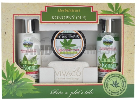 Darčekové balenie prírodnej kozmetiky s konopným olejom pre starostlivosť o telo a pleť. Obsahuje: