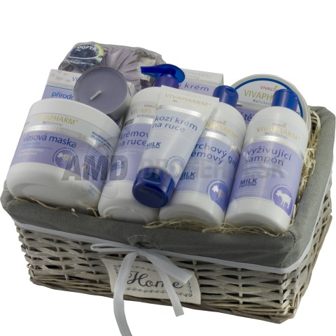 Darčekový kôš s kozou kozmetikou pre starostlivosť o pokožku tela i tváre. Originálna receptúra s vysokým podielom mliečnych proteínov je určená pre normálnu a suchú pleť.