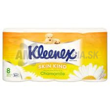Kleenex harmanček toaletný papier 8 ks 3-vrstvový je jemný k vašej pokožke.