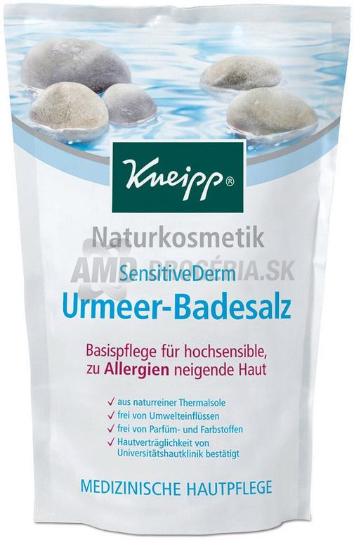 Obzvlášť citlivá pokožka so sklonom k alergiám bude vďaka prírodnej morskej soli Urmeer SensitiveDerm od Kneipp Naturskometik jemná, chránená a opäť získa svoju rovnováhu. Prírodné zložky a minerály obsiahnuté v morskej soli upokojujú pokožku a darujú jej dôležitú hydratáciu. Pre prirodzene peknú a hebkú pokožku morská soľ do kúpeľa Urmeer – Badesalz SensitiveDerm od Kneipp Naturkosmetik.