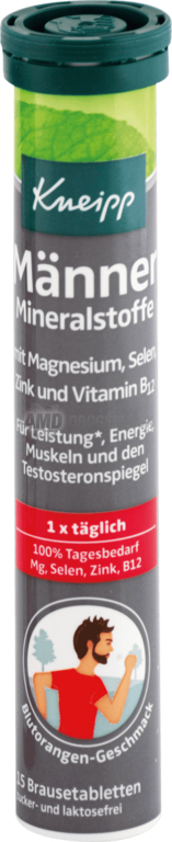 Šumivé tablety Minerály pre mužov značky Kneipp obsahujú kombináciu vitamínov a minerálov pre zdravý organizmus. Kombinácia s magnéziom, selénom, zinkom a vitamínom B12 je špeciálne navrhnutá pre výkon, energiu, k normálnej funkcii svalov a tiež normálnej hladiny testosterónu v krvi. Horčík prispieva k normálnej funkcii svalov, zinok pomáha udržať normálnu hladinu testosterónu v krvi a selén prispieva k normálnej tvorbe spermií a k normálnej funkcii imunitného systému. Výživový doplnok neobsahuje cukor a laktózu. Šumivú tabletu Kneipp stačí rozpustiť vo vode a vychutnať si jej sviežosť. Osvieži vás príchuť červeného pomaranča. Kneipp šumivé tablety ponúkajú skvelé a rýchle osvieženie, príjemnú ovocnú chuť a prospešné vlastnosti pre organizmus.