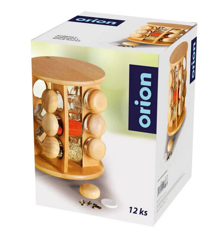 Perfektné dochutenie na dosah! Dizajnový otočný stojan s 12 sklenenými koreničkami (80 ml) urýchli hľadanie korenia, byliniek či dochucovadiel pri varení a pečení.
