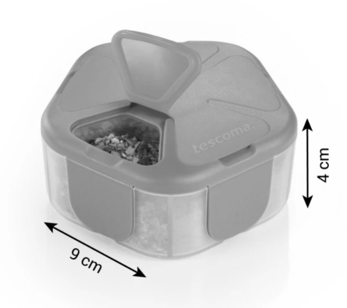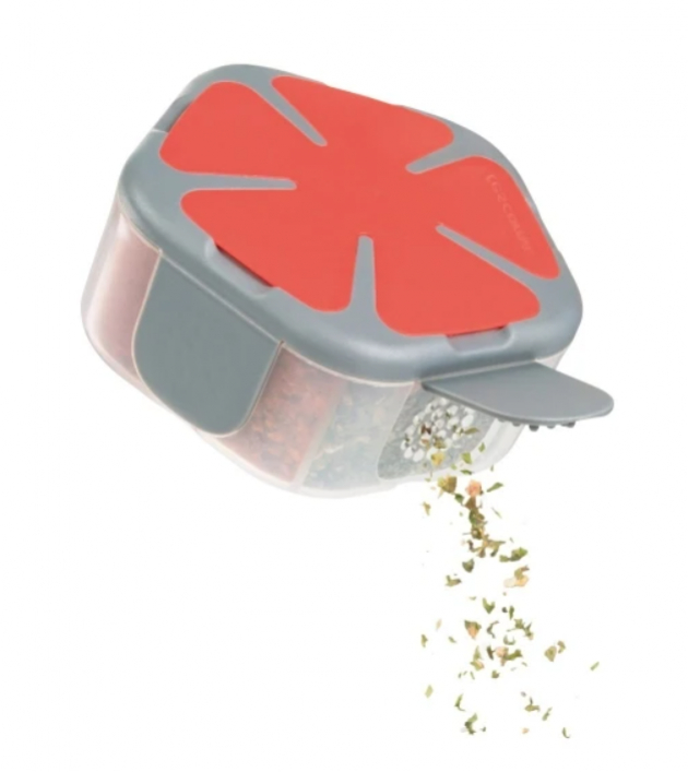 Cestovná korenička MOVE s 5 oddielmi je návrhnutá pre praktické a oddelené skladovanie a presné dávkovanie až 5 druhov korenia.