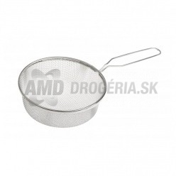 Vyrobený z oceľového tkaniva s okami 2x2 mm, plechu na obrube a drôtu - držadlo. Galvanicky lesklé pokovovanie.