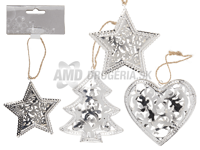 KOVOVÉ OZDOBY NA STROMČEK STRIEBORNÉ 1 KS