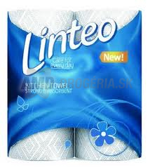 Jemné biele kuchynské utierky Linteo sú balené po 2 kusoch.