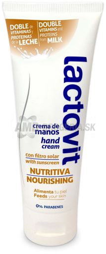 Lactovit vyživujúci krém na ruky dodáva pokožke intenzívnu hydratáciu a výživu až do hĺbky a zanecháva pokožku hodvábne jemnú vďaka zloženiu obohatenému o vitamíny a mliečne proteíny.