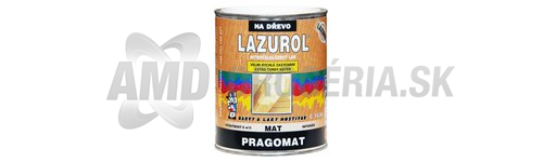 Lak nitrocelulózový na drevo, matný LAZUROL PRAGOMAT nitrocelulózový lak matný. Lak je určený pre matné, tvrdé nátery dreva. Obsahuje látky pohlcujúce UV žiarenie, náter preto nezožltne a je obmedzené aj žltnutie dreva pod náterom. Lak má vynikajúce zasychanie, rýchle pretvrdnutie a veľmi dobrý rozlev. Ako podklad slúži: drevo, drevotrieska, korok. Prostredie: interiér. Príklady použitia: športové náradie, drobné drevené predmety. Koloidný roztok nitrocelulózy v organických rozpúštadlách s prísadou zvláčňovadiel, syntetických živíc a aditív. Aplikácia: štetcom, striekaním Riedenie: Riedi sa riedidlom C6000. Výdatnosť: 9 m2/liter v jednej vrstve.
