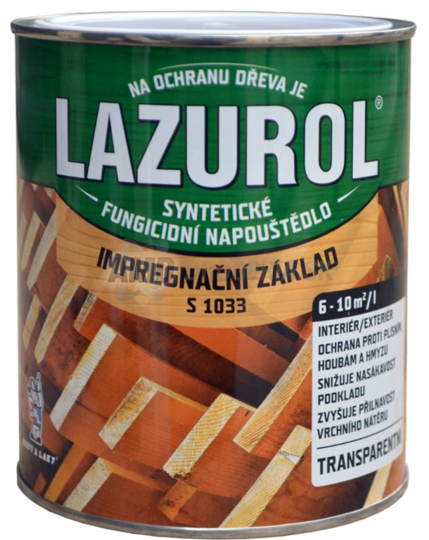 LAZUROL S 1033 impregnačný základ je určený k preventívnej chemickej povrchovej ochrane dreva a materiálov na jeho báze pred napadnutím plesňami, drevosfarbujúcim aj drevokaznými hubami a drevokazným hmyzom.