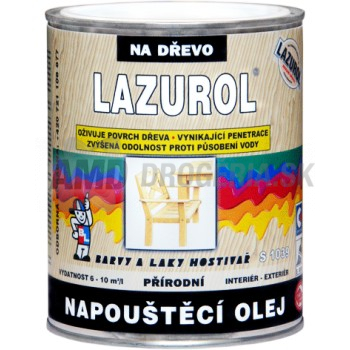 LAZUROL NAPÚŠŤACÍ OLEJ- je určený na ošetrovanie mäkkého aj tvrdého dreva, vystaveného poveternostným vplyvom aj k náterom v interiéroch, napr. dreveného nábytku.- oživuje povrch dreva, dodáva mu hodvábny lesk a zvyšuje odolnosť proti pôsobeniu vody a nečistôt.