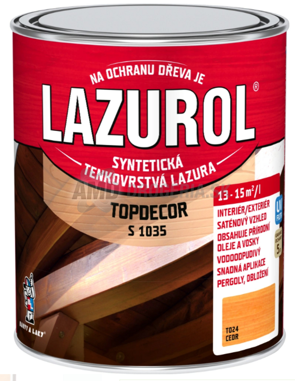 Je lak syntetický lazúrovací tenkovrstvový s prídavkom zmesi špeciálnych voskov a olejov. Lazurol Topdecor je určený k ochranným lazúrovacím náterom mäkkého i tvrdého dreva, vystaveného poveternostným vplyvom ik náterom v interiéroch. Hlboko preniká do štruktúry dreva a výrazne zdôrazní štruktúru dreva. Poskytuje dlhodobú ochranu dreva proti vode a UV žiareniu. Nátery sú stálofarebné, ľahko obnoviteľné a nepraskajú.