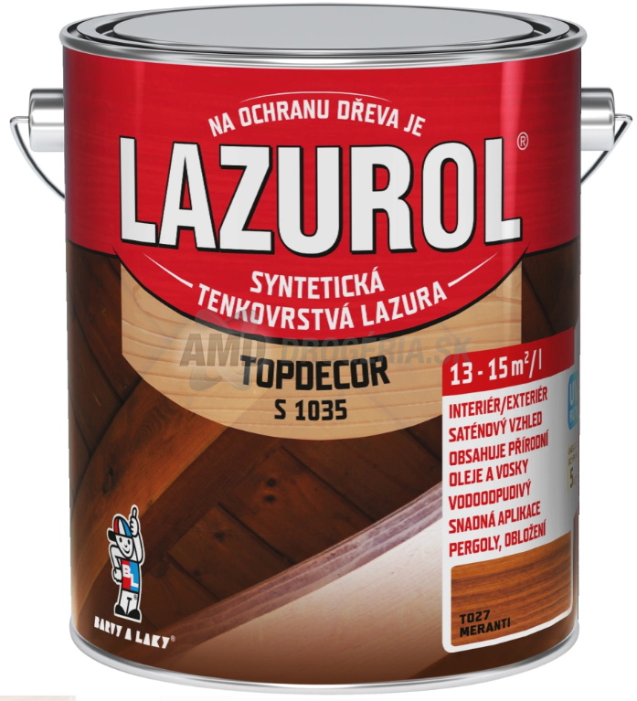 Je lak syntetický lazúrovací tenkovrstvový s prídavkom zmesi špeciálnych voskov a olejov. Lazurol Topdecor je určený k ochranným lazúrovacím náterom mäkkého i tvrdého dreva, vystaveného poveternostným vplyvom ik náterom v interiéroch. Hlboko preniká do štruktúry dreva a výrazne zdôrazní štruktúru dreva. Poskytuje dlhodobú ochranu dreva proti vode a UV žiareniu. Nátery sú stálofarebné, ľahko obnoviteľné a nepraskajú.