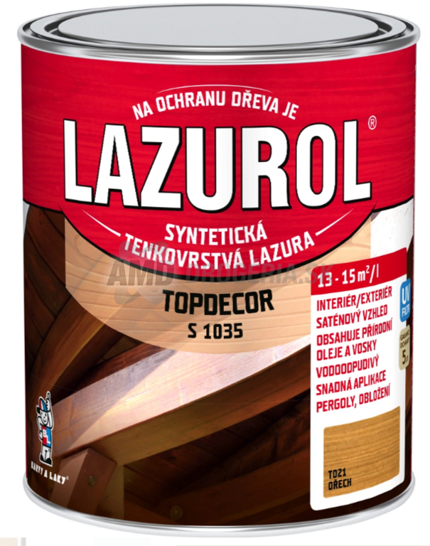 Je lak syntetický lazúrovací tenkovrstvový s prídavkom zmesi špeciálnych voskov a olejov. Lazurol Topdecor je určený k ochranným lazúrovacím náterom mäkkého i tvrdého dreva, vystaveného poveternostným vplyvom ik náterom v interiéroch. Hlboko preniká do štruktúry dreva a výrazne zdôrazní štruktúru dreva. Poskytuje dlhodobú ochranu dreva proti vode a UV žiareniu. Nátery sú stálofarebné, ľahko obnoviteľné a nepraskajú.