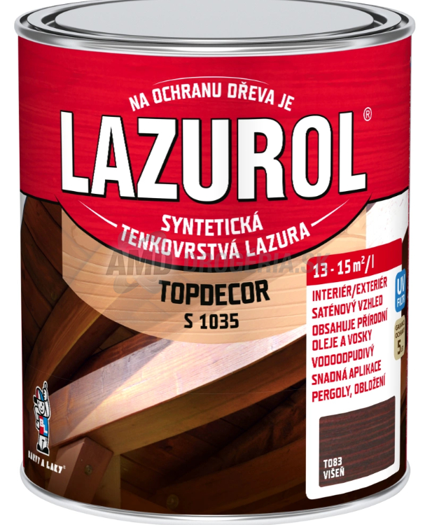 Je lak syntetický lazúrovací tenkovrstvový s prídavkom zmesi špeciálnych voskov a olejov. Lazurol Topdecor je určený k ochranným lazúrovacím náterom mäkkého i tvrdého dreva, vystaveného poveternostným vplyvom ik náterom v interiéroch. Hlboko preniká do štruktúry dreva a výrazne zdôrazní štruktúru dreva. Poskytuje dlhodobú ochranu dreva proti vode a UV žiareniu. Nátery sú stálofarebné, ľahko obnoviteľné a nepraskajú.