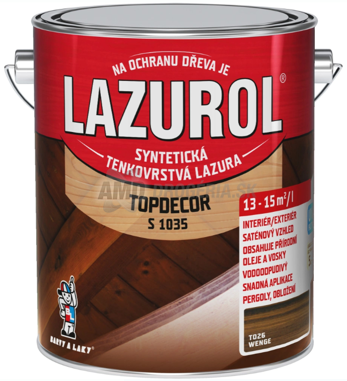 Je lak syntetický lazúrovací tenkovrstvový s prídavkom zmesi špeciálnych voskov a olejov. Lazurol Topdecor je určený k ochranným lazúrovacím náterom mäkkého i tvrdého dreva, vystaveného poveternostným vplyvom ik náterom v interiéroch. Hlboko preniká do štruktúry dreva a výrazne zdôrazní štruktúru dreva. Poskytuje dlhodobú ochranu dreva proti vode a UV žiareniu. Nátery sú stálofarebné, ľahko obnoviteľné a nepraskajú.