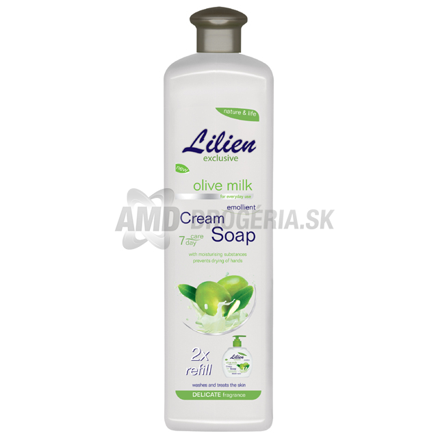 Jemné krémové tekuté mydlo s vôňou olivového mlieka pre dokonalú starostlivosť o pokožku rúk, zanechává pleť krásne jemnú a hebkú.