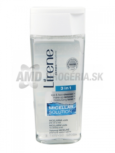 Micelárna voda Lirene 3v1 pre oči a tvár bez alkoholu čistí, odstraňuje make-up a tonizuje. Ľahké zloženie s micelami pre účinné a veľmi jemné čistenie bez použitia vody. D-panthenol, med a glycerín upokojujú, zmäkčujú a zvlhčujú pokožku. Vitamín C pomáha regenerovať a rozjasňovať pokožku. Ideálna je pre všetky typy pokožky.