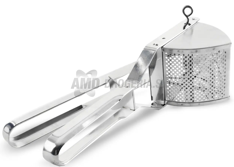 Ručný nerezový lis na zemiaky je určený na lisovanie varených zemiakov pri príprave zemiakového cesta, tiež ho môžte využiť na pasírovanie varenej zeleniny na pyré alebo zrelých paradajok na pretlak. Priemer otvorov je 3 mm.