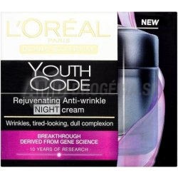 S pribúdajúcim vekom sa pleť regeneruje pomalšie. Po prebudení zostáva pleť unavená, vrásky výrazné a pleť bez jasu. Objavte novú nočnú starostlivosť Kód Mladosť, vďaka ktorej sa pleť regeneruje lepšie, ako by ste spala dlhšie.Inovácia: technológia Pro-Gen Night ActiveUnikátna technológia, inšpirovaná vedou o génoch, bola vyvinutá pre zlepšenie schopnosti pleti regenerovať sa počas noci.Výsledky:-Po prvom prebudení - Pleť je intenzívne hydratovaná, hladšia a svieža-Po 7 nociach - Pleť sa lepšie regeneruje: známky únavy vyzerajú redukované, rysy tváre sú hladšie.-Po 28 nociach - Vrásky sú viditeľne redukované, pleť vyzerá mladšie.Použitie:Používajte každý večer na celú tvár.Zrelá pleť reaguje na vonkajšie agresormi inak ako mladá. Vo veku od 35 rokov už trvá dlhšie obnova pleti, pokožka začína strácať svoju pružnosť a vitalitu, tvár vyzerá unavene a postupne sa na nej objavujú hlbšie a hlbšie vrásky. Omladzujúci denný krém proti vráskam Kód mladosti zanecháva pokožku hydratovanú, hladkú a rozjasnenú. Pleť sa tak javí ako ďaleko mladšie, než v skutočnosti je. Vhodné pre všetky typy pleti vo vekovej kategórii od 35 rokov.Aktívne látky:Pre-Gent Technology - po každodennej aplikácii dodáva optimálnu hydratáciu, zlepšuje schopnosť obnoviť mladistvých vlastnosti pleti.Účinky:hydratuje, vyhladzuje a rozjasňuje pleť, obnovuje mladistvý vzhľad pleti, pokožka vyzerá oddýchnuto a uvoľnene, redukuje výskyt vrások, okamžite dodáva pocit osvieženia.Výsledky zákazníckej štúdie 229 žien:78% potvrdilo, že ich pleť vyzerala mladšie,69% zaznamenalo výraznú redukciu vrások,71% súhlasilo, že ich pleť vyzerala oddýchnuto.Ako používať:Nanášajte omladzujúci denný starostlivosť proti vráskam Kód mladosti každé ráno na čistú pleť. V prípade potreby možno nanášať aj na noc. Pre efektívnejšie výsledok odporúčame prípravok kombinovať s koncentrovanou starostlivosťou proti vráskam z rovnakej série.