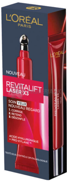 L'Oréal Paris očný krém Revitalift Laser X3 v praktickom balení 15 ml. Tento očný krém s trojitým účinkom proti starnutiu pleti je navrhnutý tak, aby redukoval vrásky, zmenšoval vačky pod očami a spevňoval pleť okolo očí.
