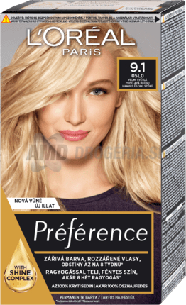 L'Oréal Paris Préférence farba na vlasy s intenzívnymi farebnými pigmentami dodáva vlasom trvalé zafarbenie s lesklým elixírom Shine Complex. Vlasy pôsobia ako čerstvo nafarbené až 8 týždňov! L'Oréal Paris Préférence spoľahlivo a 100 % prekrýva aj šedivé vlasy! Balzam po farbení obohatený o vitamín E poskytuje intenzívnu starostlivosť, jemný lesk a UV ochranu. Vlasy sú dokonale lesklé a hodvábne jemné. Farba na vlasy L'Oréal Paris Préférence teraz s novou príťažlivou vôňou.