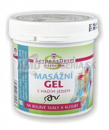 Hadí jed napomáha uvoľniť napäté svalstvo, zoslabuje svalové kontrakcie a má silné relaxačné a regeneračné účinky.Premasírovaniu postihnutých miest / svalov, kĺbov, chrbta / therapeutickým gélom s hadím jedom uľavuje od bolesti a pomáha pri ťažkostiach spojených s artritídou, reumatickými stavmi, zápalu šliach, opuchov kĺbov apod.