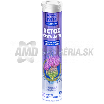 Šumivé tablety Maxivita Detox očista pečene sú vhodným výživovým doplnkom na podporu trávenia a činnosti pečene. Tablety obsahujú prírodný extrakt z pestreca mariánskeho, ktorý prispieva k normálnemu tráveniu a činnosti pečene. Šumivé tablety Maxivita Detox sú vhodné k prečisteniu pri detoxikačnej kúre. S príchuťou maliny.