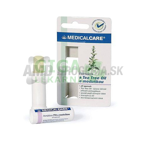 MEDICALCARE POMÁDA TEA TREE 4,8 Gvhodný ako podporný prostriedok pri oparochTTO je prírodné antiseptikum, má antibakteriálne účinkyextrakt z medovky lekárskej pôsobí protizápalovo a hojivo