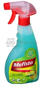 Mefisto je prípravok na odstránenie mastných a pripečených nečistôt z nerezových, smaltovaných alebo keramických povrchov, ako súšporáky, rúry, grily, riad a kuchynské obklady. Nepoužívať na hliník, teflón a lakované plochy.