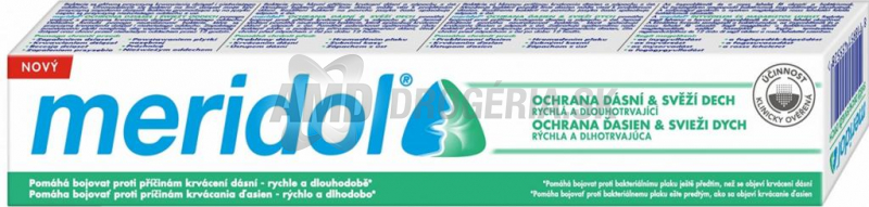MERIDOL Gum Protection & Fresh Breath 75 ml je veľmi efektívna zubná pasta, ktorá vám bude pomáhať s každodennou zubnou hygienou. Vďaka jej zloženiu budete chrániť zuby pred zubným kazom. Vhodná je nielen pre zuby, ale aj ďasná, ktoré dokáže udržať v najlepšej kondícii. Jej používaním svojim zubom poskytujete prevenciu proti vzniku paradentózy. Starostlivosť o chrup bude vďaka tejto zubnej paste jednoduchšia a výsledky spozorujete už na prvý pohľad. Základné parametre zubnej pasty MERIDOL Gum Protection & Fresh Breath 75 ml Je vytvorená pre citlivejšie zuby Zubná pasta MERIDOL preventívne chráni proti kazom Pomáha v boji proti paradentóze Zubná pasta MERIDOL Gum Protection & Fresh Breath 75 ml sa postará aj o ďasná