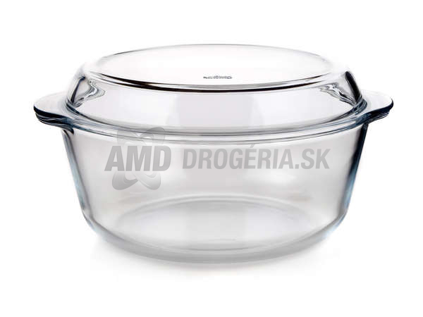 Sklenený okrúhly pekáč s vekom 3,15 l je vyrobený z tvrdého boritokremičitého skla, ktoré je veľmi odolné (mechanicky aj teplotne -40 až 300 st.C). Výhodou je dlhá životnosť, hygienická nezávadnosť a ľahká údržba (možno umývať v umývačke riadu).