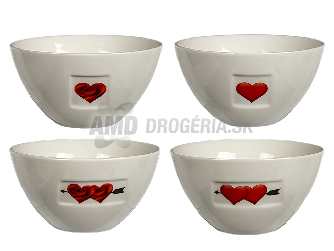 Miska na cereálie Srdce s ružou, rozmer 7 x 13 cm, 4 varianty