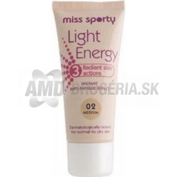 MISS SPORTY MAKE-UP LIGHT ENERGY 30 MLRozjasňujúci makeup bojujúci proti únave pleti.Obohatený o Saphire, vitamíny a minerály.Vhodný pre všetky typy pleti.