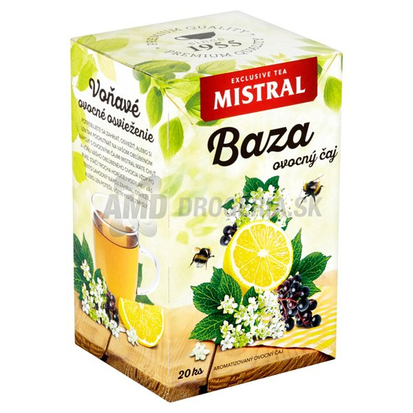 Aromatizovaný ovocný čaj s Bazou čiernou. Porciovaný v nálevových vrecúškach.