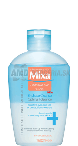 MIXA Dvojfázový odličovač očí, pre citlivé oči náchylné k podráždeniu, rozpúšťa a odstraňuje make up