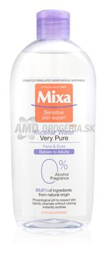 Micelárna voda tak čistá a šetrná, že je vhodná aj na citlivú pleť bábätiek. Micelárna voda Very Pure od Mixa prichádza s inovatívnym zložením aj pre tú najjemnejšiu pokožku dospelých a detí. Jemné, ale účinné zloženie zachováva ochrannú bariéru pleti, osviežuje ju a upokojuje. Neobsahuje alkohol ani parfumy, nedráždi. 99,6 % zložiek je prírodného pôvodu. Testované pod dermatologickou a pediatrickou kontrolou. Inovácia pre čistenie citlivej pokožky s micelárnou vodou Mixa Very Pure!