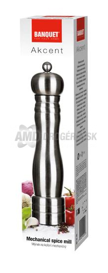 BANQUET Mlynček na korenie AKCENT - perfektný spoločník pre všetkých milovníkov kuchynských dobrodružstiev a výnimočných chuťových zážitkov. Tento mlynček na korenie je navrhnutý tak, aby priniesol pohodlie, precízne brúsenie a výnimočný štýl do vášho kulinárskeho sveta.